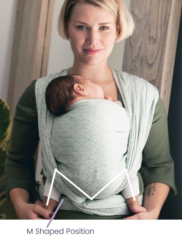 It is preferable to have your baby positioned so that their hips are at the same height or slightly lower than their knees, this forms an M position and is optimal for hip development.
