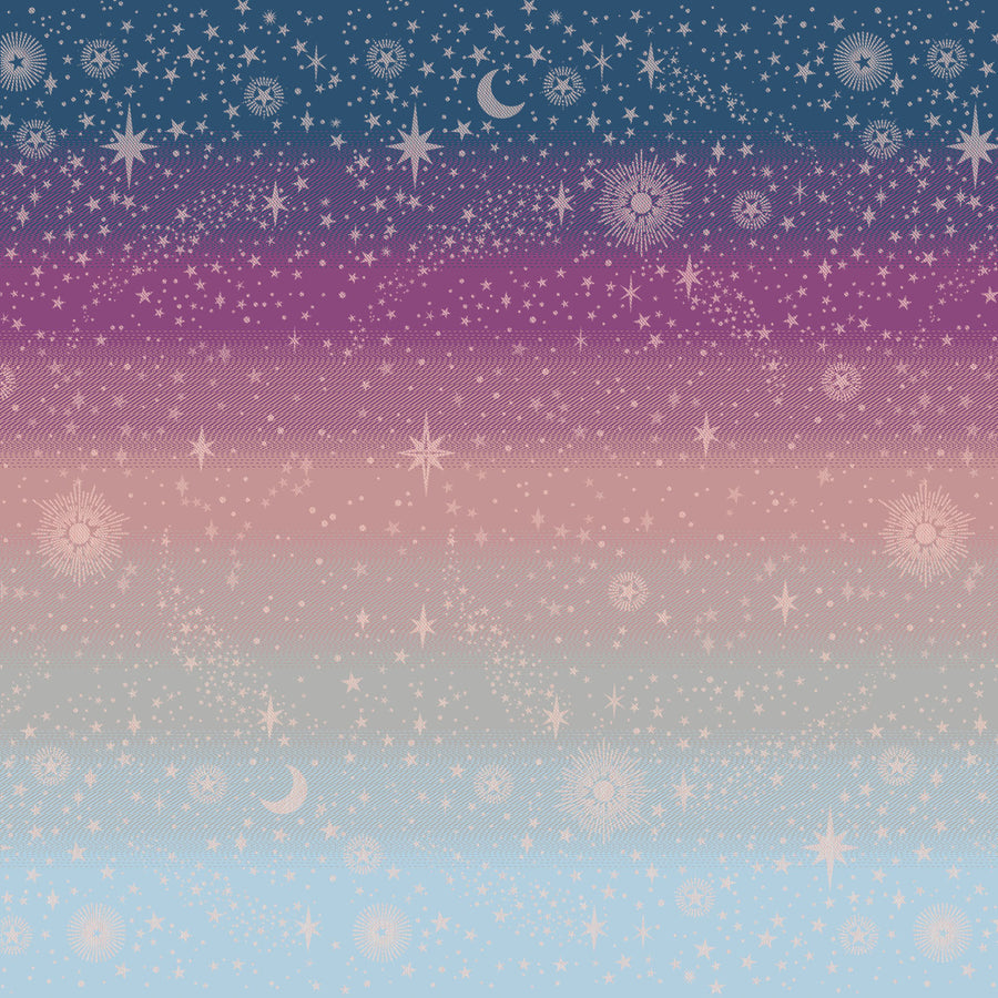 Constellations twinkle in an arctic sky picked out in soft pinks with beautiful nubs and slubs, characteristic of silk, speckle across the pattern to give a unique look and feel to each piece of fabric creating a beautiful effect.