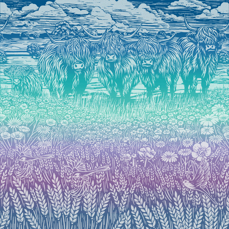 This Highland Cow pattern draws inspiration from Scotland’s rugged landscapes. While traditionally associated with the remote Highlands, we often see these cows in the countryside all around Scotland. The design seeks to capture their unmistakable sense of quiet strength and stoic charm.