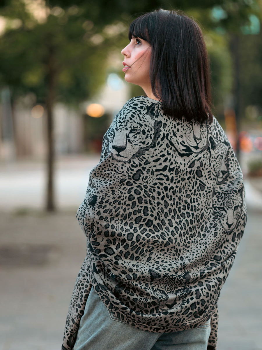 Prowl Savannah is a bold modern twist on animal print; elegant, edgy, and effortlessly stylish. The classic leopard spots are woven in warm beige organic cotton against a deep black organic cotton background. Scattered throughout the pattern, leopard faces emerge subtly; powerful, poised, and beautifully detailed. Their gaze is calm and confident, embodying the spirit of strength and grace.
