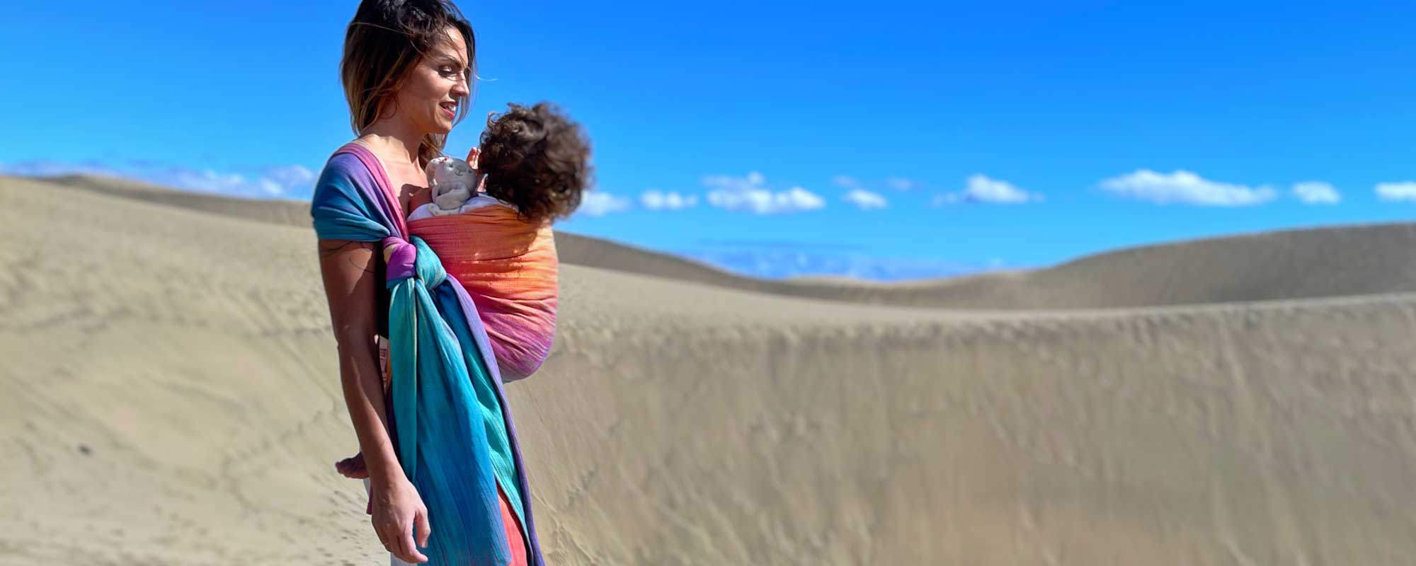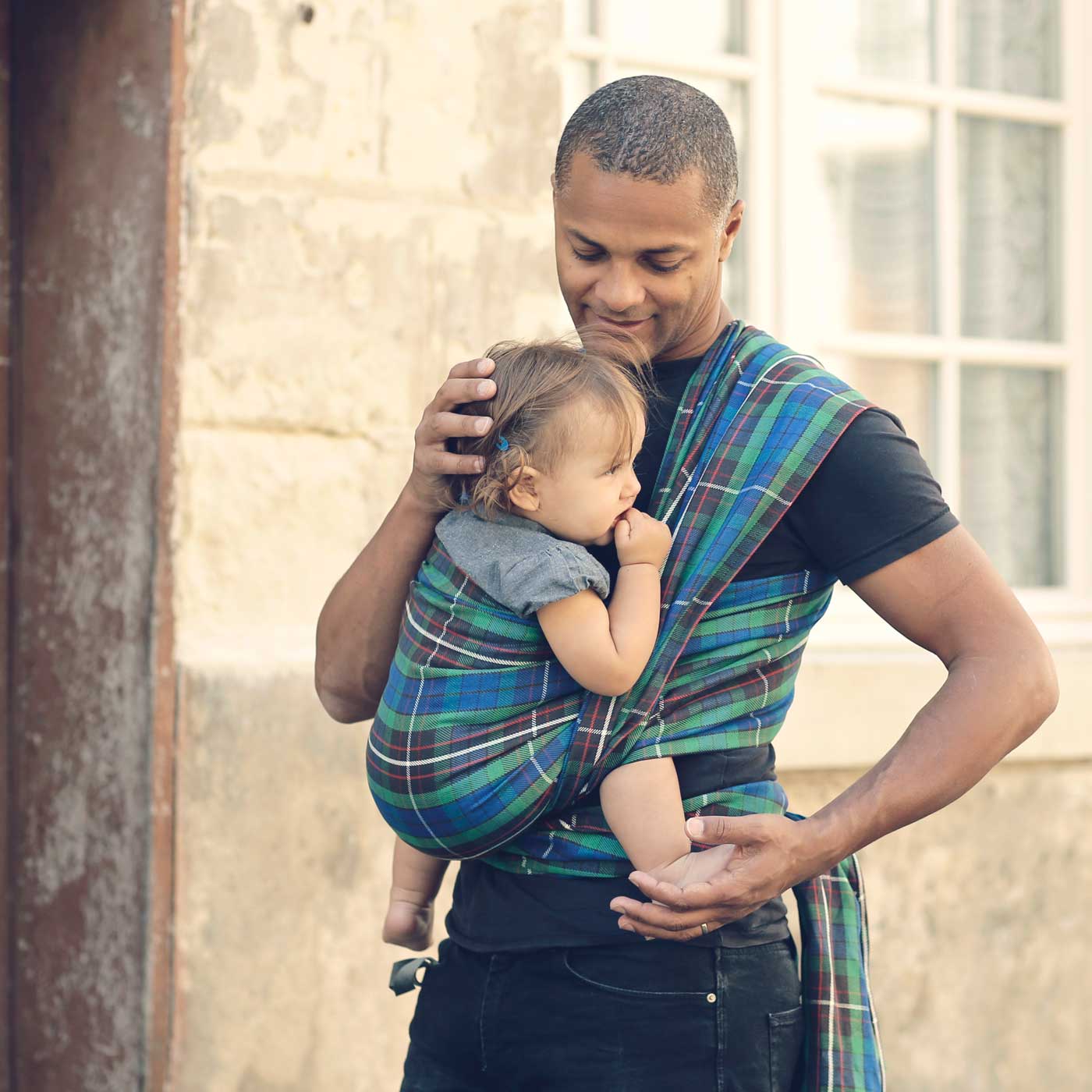 However, if your partner is one size up from you, you could opt for the longer length and have slightly longer tails or you would cross the tails at your back and bring them back around, under baby’s legs, and tie at the front. This is an easy way of using up the extra length.